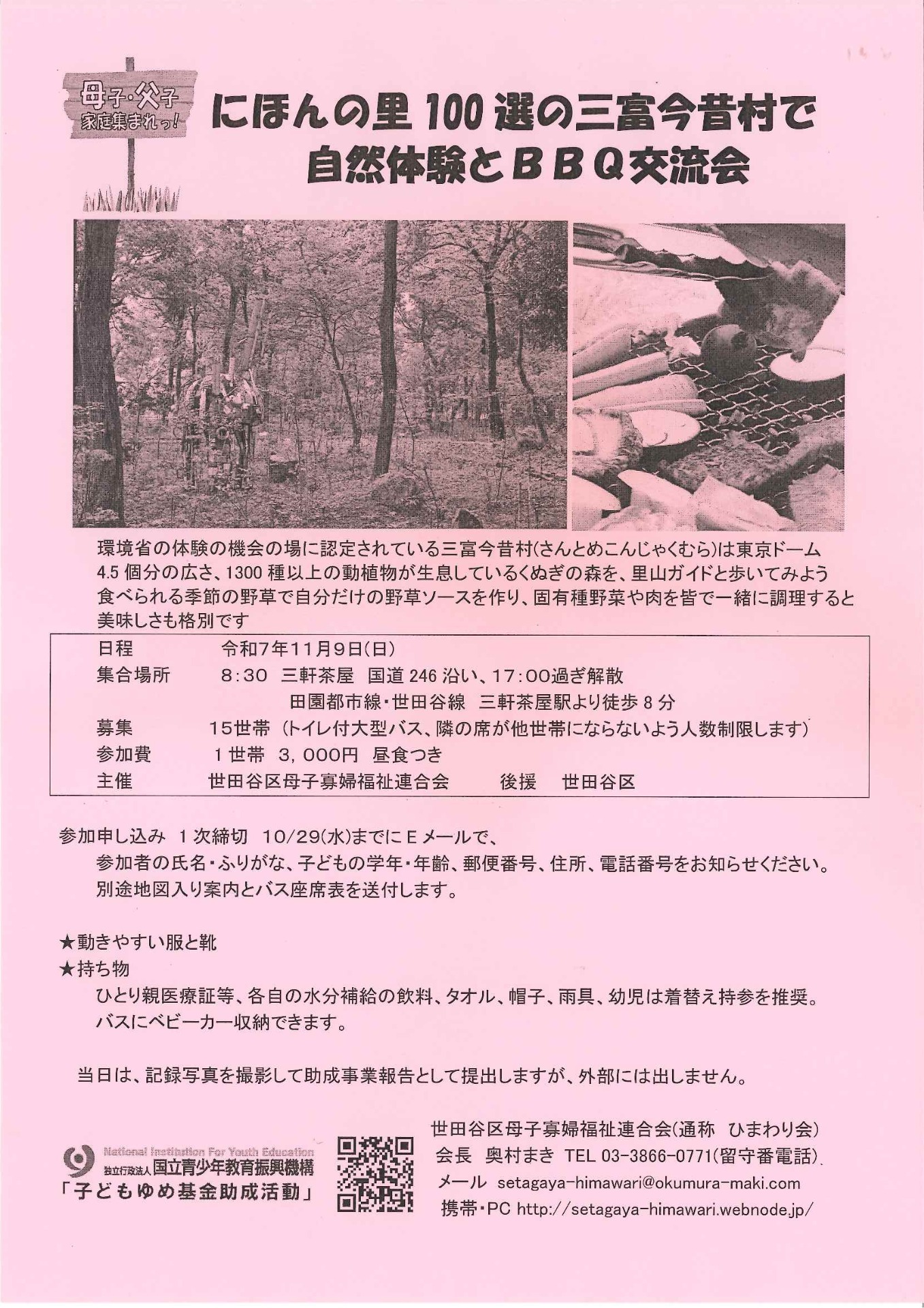 10月29日までに世田谷区母子寡婦福祉連合会(通称:ひまわり会)へメール
